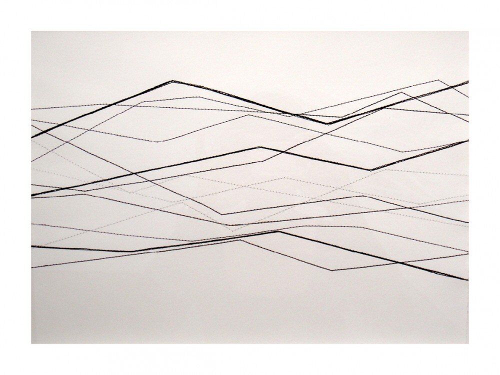 over stitched lines on canvas backed paper