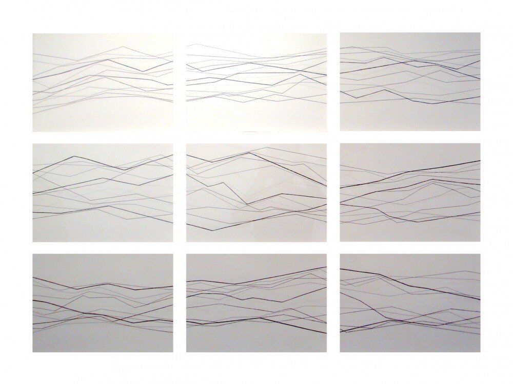 Polyester Thread on Lana Aquarelle and calico (group of nine)